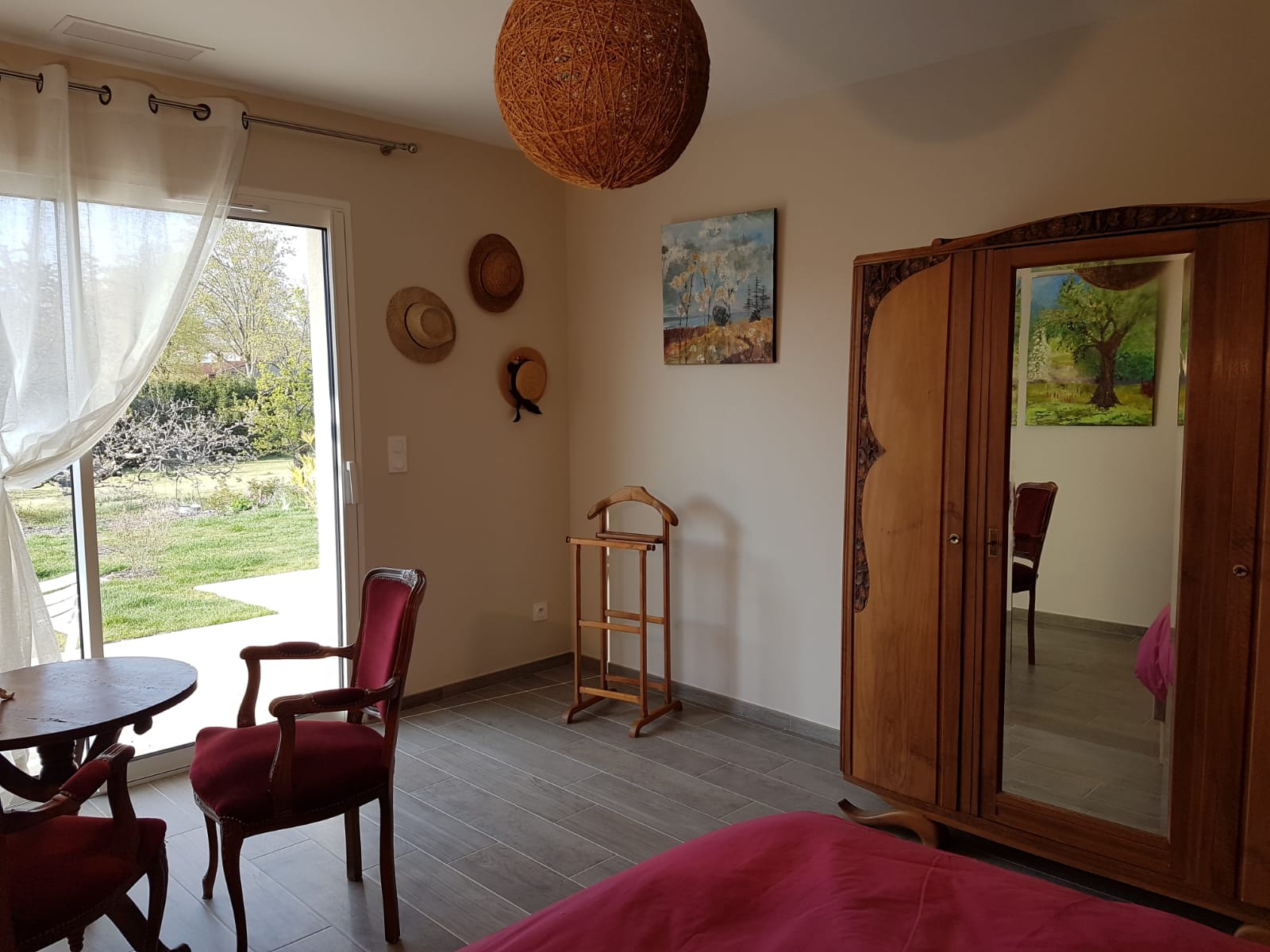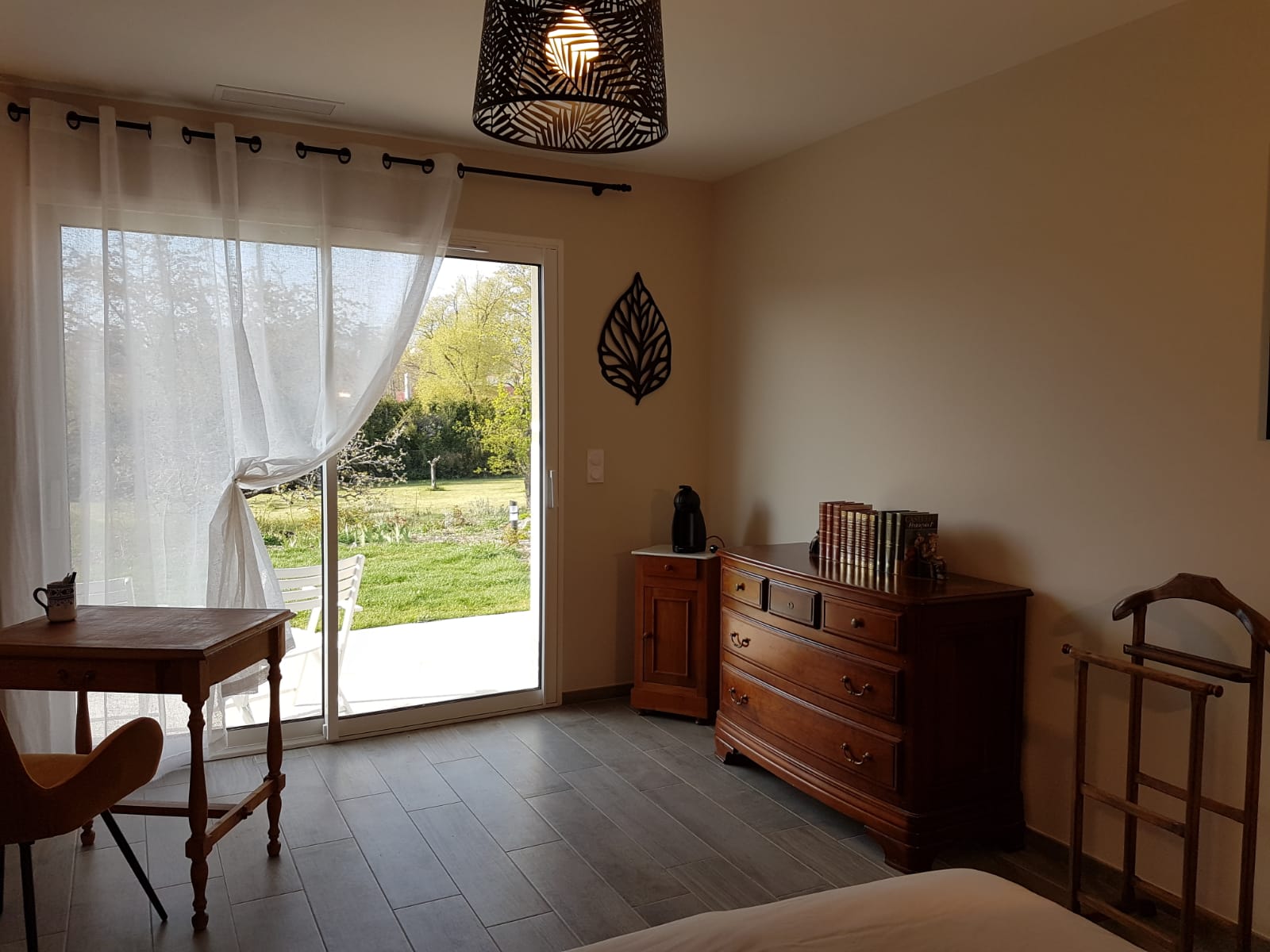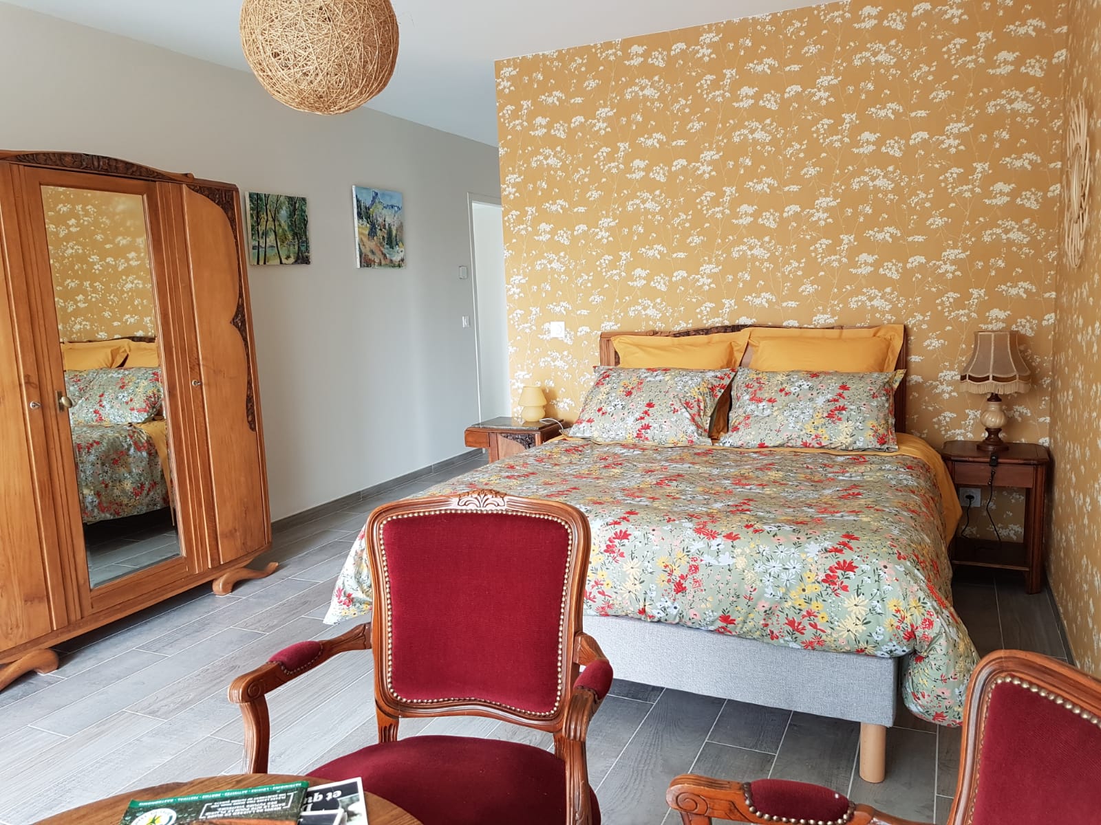 Chambre au rez-de-chaussée comprenant 1 lit double 160 x 200, possibilité d'un lit supplémentaire (voir avec la propriétaire)