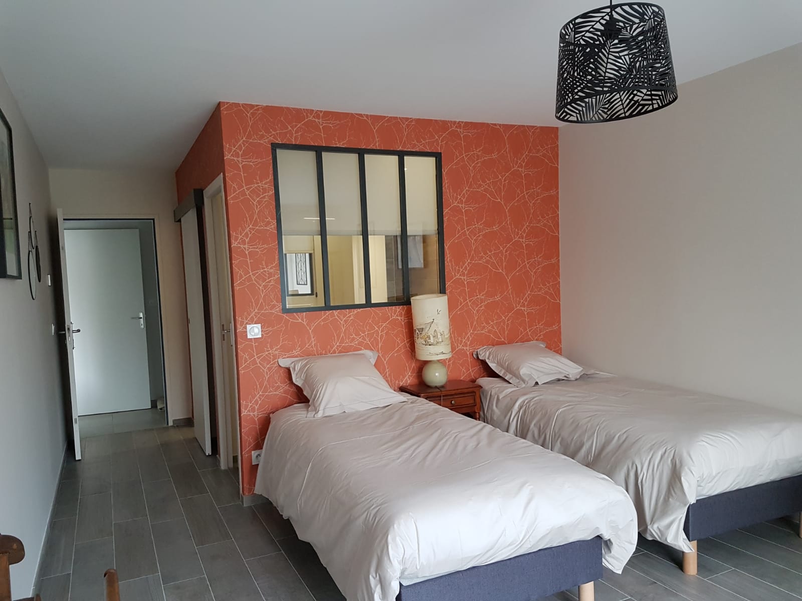 Chambre au rez-de-chaussée comprenant 2 lits simples 90x200 ou un lit double, possibilité d'un lit supplémentaire (voir avec la propriétaire)